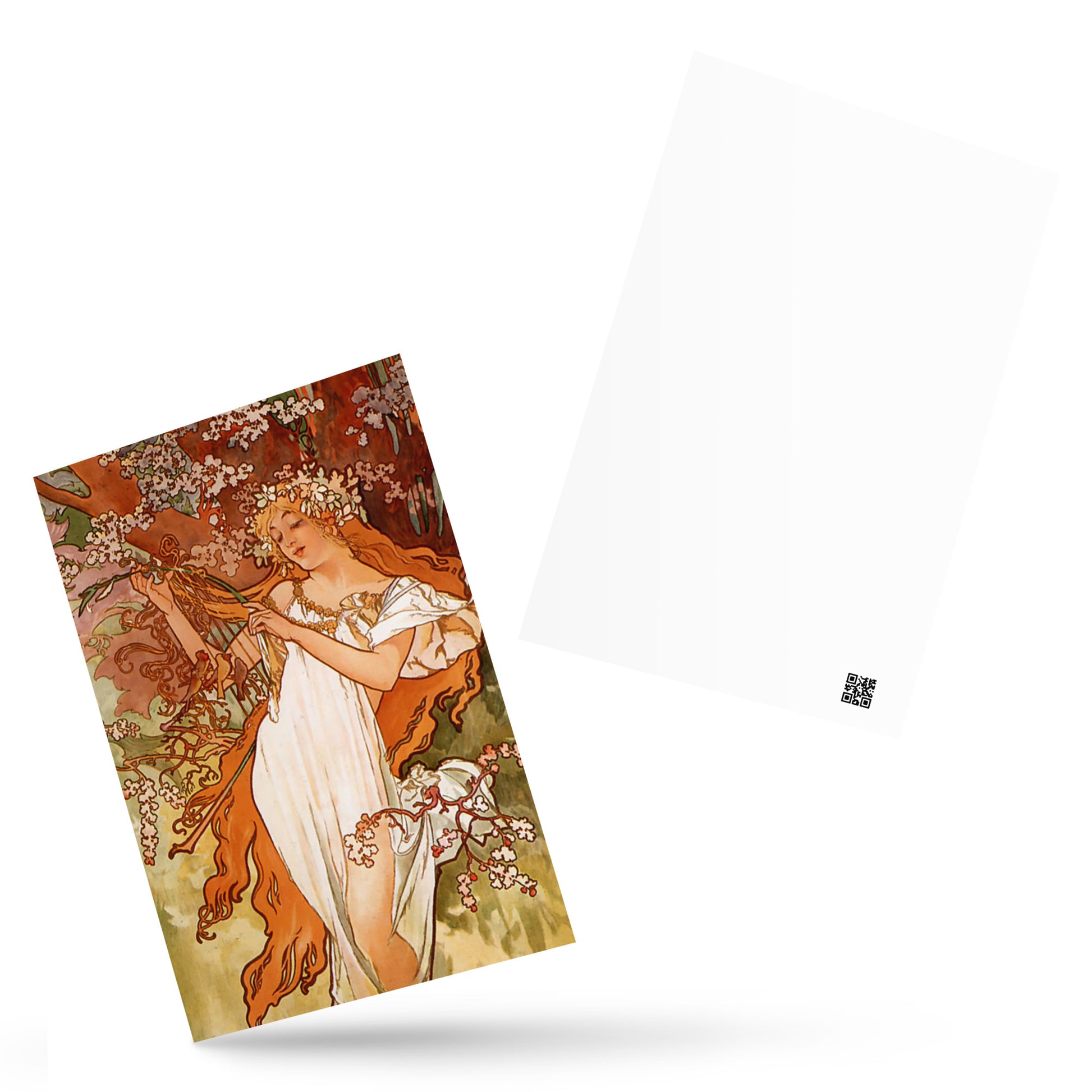 『四季』シリーズの春(作者:アルフォンス・ミュシャ)をプリントしたポストカードです。 1896年にアルフォンス・ミュシャによって描かれた一連の作品です。